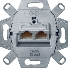 This data socket from Hager Berker is suitable for transmission rates up to 250 MHz. RJ45 connections for networks Cat. 5e (1000 Mbit/s / 250 MHz), shielded in accordance with ISO/IEC 11801 A2. Model in accordance with DIN EN 60603-7-5, shielding in accordance with DIN EN 55022. The housing is cast iron and the external eyelets on the support ring can be broken off for a round shape.
