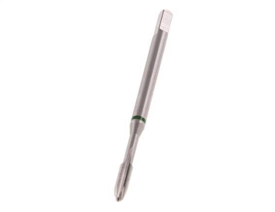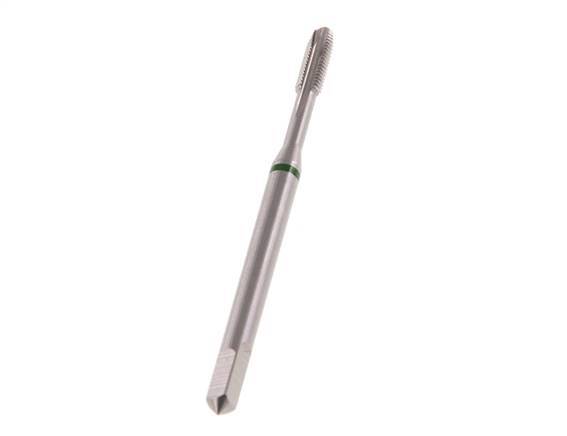 This is a machine thread tap for M3 metric throughway threads. It has a 3.5 mm shaft and 10 mm long thread cutter.