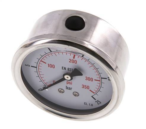 0..25 Bar (0..363 psi) Glycerin Pressure Gauge Rear Stainless steel/Brass 63 mm Class 1.6