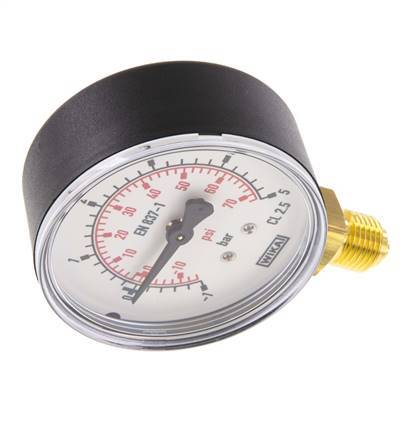 -1..5 Bar (-15..73 psi) Pressure Gauge Below Plastic/Brass 63 mm Class 2.5