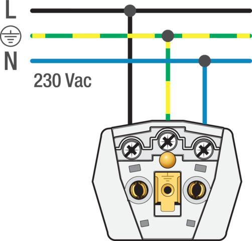 Compound socket with pin ground (base and finish set). The base is equipped with screw terminals and claw mounts. The socket also has a child safety feature and has a recessed depth of 28.5 mm. Creme RAL1013.