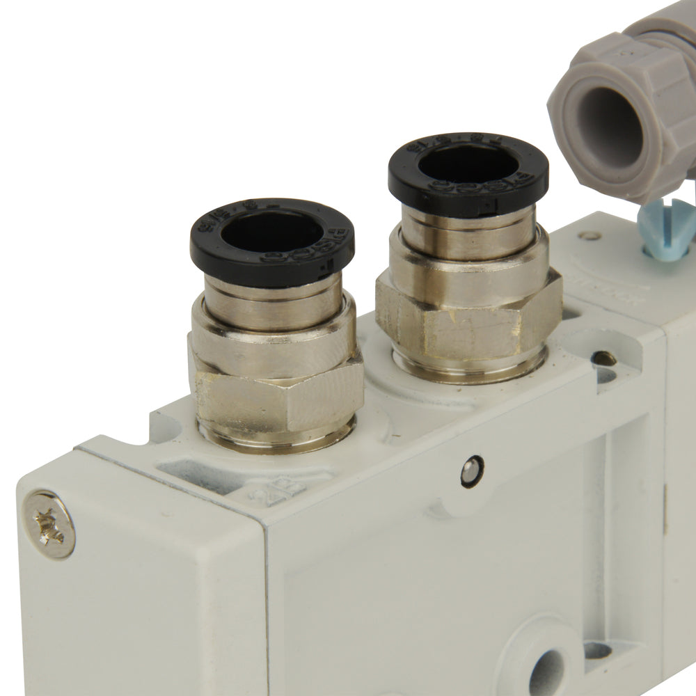 - It has a push-in connection for easy installation and release for pneumatic hosing