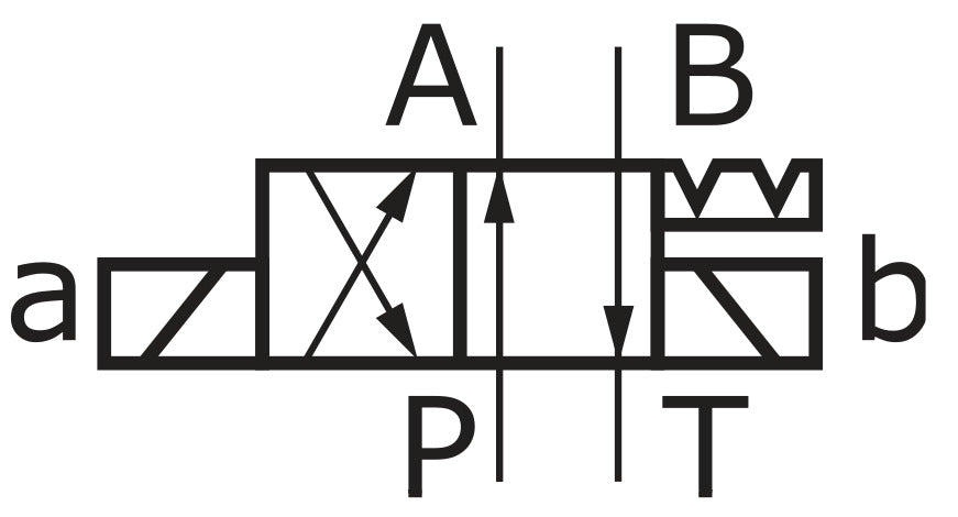Argo-Hytos direct operating 4/2 way hydraulic solenoid vave with NG6 (D03) mounting interface (the mounting interface NG 6 is standardised according to DIN 24340-A6, ISO 4401-03, CETOP R 35 H-03 and NFPA-D03) and a 24 V DC coil. The valve has a cast iron housing with NBR (nitrile rubber) sealing.There is no initial position. A detent mechanism can be added to either side, locking that side and making it the intial position. The valve is suitable for systems with a max pressure of 350 bar (5075 Psi) and a operating temperature range of -30 - 80 ° C (-22 - 176 ° F). The valve has a flow rate of 80 l/min and a maximum allowable viscosity of 400 cSt. The NBR (nitrile rubber) sealing is suited for mineral oils. Manual override feature can be used to operate the system during power failure. The manual override can be operated up to 5-10 bar. This solenoid valve has a detent mechanism. During operation, the permanent current supply to the electromagnet can be removed because the valve is kept in position with the detent, this contributes to energy-efficient operation. Since the valve has a maximum operational pressure of 350 bar (5075 psi), it can be used for high pressure applications. The valve has an IP65 rating.