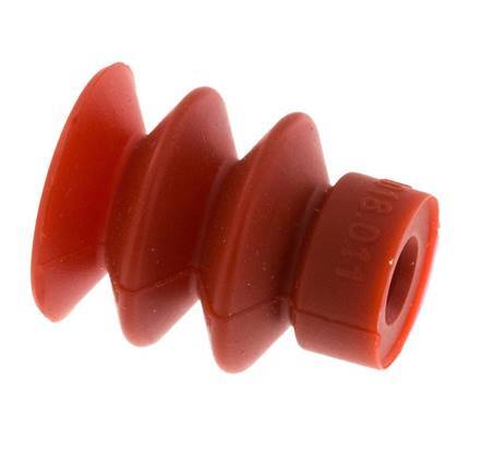 The vacuum suction cup is used in vacuum systems for pick-and-place operations. The main selection criteria for suction cups are material, shape and diameter. This bellows type vacuum cup can be used to lift materials witha curved, angled surface or surfaces with varying heights. The suction cup is made from red Silicone and is recommended for food or electronics. Please see our datasheet with material specifications.