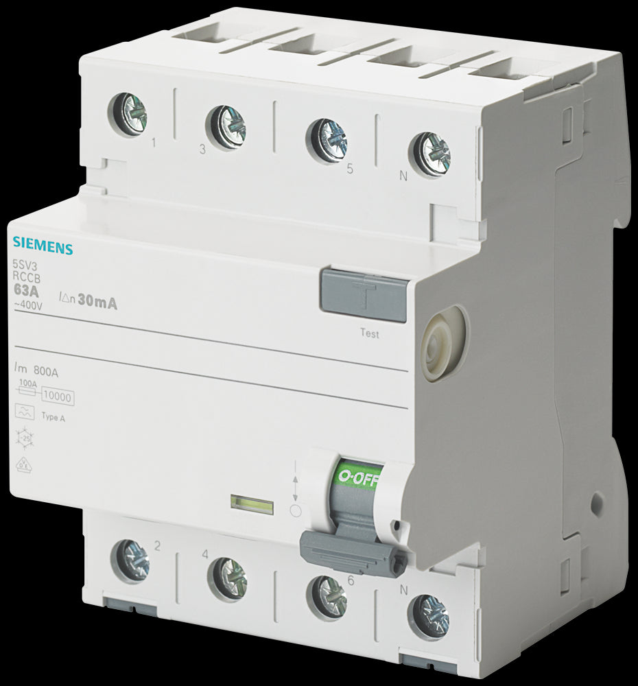 The siemens have residual current operated circuit breaker which has current rating of 63 a, number of poles are 4, tripping characteristics is type a , trip sensitivity is 500 ma and voltage rating is 400 v. Number of poles is 4. Size of installation devices / according to din 43880 is 1. Mechanical service life (switching cycles) / typical is 10 000. Short-circuit current / of series fuse / maximum permissible is 100 a. Short-circuit current rating is 10 ka. Swit.