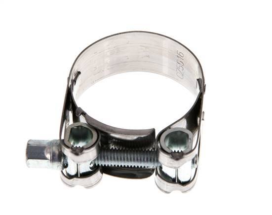 Norma hose clamp with an adjustable range of 37 - 40 mm. It has a band width of 18 mm. The housing material is stainless steel 430.It has a t-bolt design, which is tightened and loosened by twisting the bolt.It has a wire design, which is tightened and loosened with the screw.