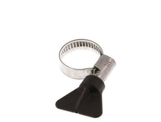Norma hose clamp with an adjustable range of 12 - 22 mm and with a butterfly handle. The butterfly handle can be twisted to tighten or loosen the hose clamp through the worm gear design.. It has a band width of 9 mm. This hose clamp is made according to DIN 3017-1 standard. The housing material is stainless steel 304. The hose clamp is tightened or loosened by using a screwdriver due to the worm gear design.