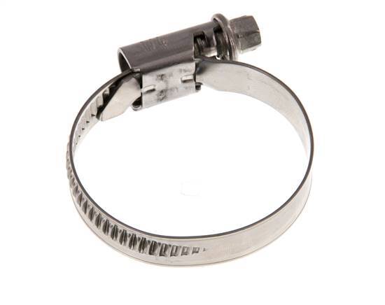 Norma hose clamp with an adjustable range of 25 - 40 mm. It has a band width of 9 mm. This hose clamp is made according to DIN 3017-1 standard. The housing material is stainless steel 304. The hose clamp is tightened or loosened by using a screwdriver due to the worm gear design.