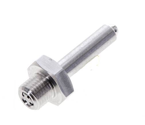 This is a noise protection nozzle with a M 12x1.25 male threaded inlet port, made of aluminum with a hard PVC muffler. Suitable for air consumption of up to 150 l/min at 4 bar (58 psi), and a maximum temperature of up to 90°C.