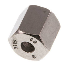 This union nut (female threads) is designed to be used with a cutting ring fitting. The nut has a M14 x 1.5 threads, making it suitable for an outer pipe diameter of 6 mm. To install, the union nut should be slid over the pipe first. Then, the pipe can be inserted into the cutting ring fitting before tightening the union nut. This will ensure a leak-free seal. Fitting is made out of stainless steel 316 ti (1.4571). It has an S (heavy) load class, in accordance with the DIN 2353. It is made in accordance with the DIN EN ISO 8434-1 (DIN 2353) and the DIN 3870 standards.