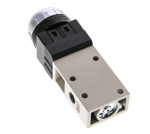 Choose a 3/2-way valve for a single acting cylinder with a spring return, which requires a single action to extend. After the spring retracts the valve rod, the valve returns to its normal, unactuated position. A pneumatic button operated valve is used to manually control other pneumatic devices within a system. There are various types of button actuators such as push button, mushroom button, rotary switch, key switch, tumbler switch, or safety button.
